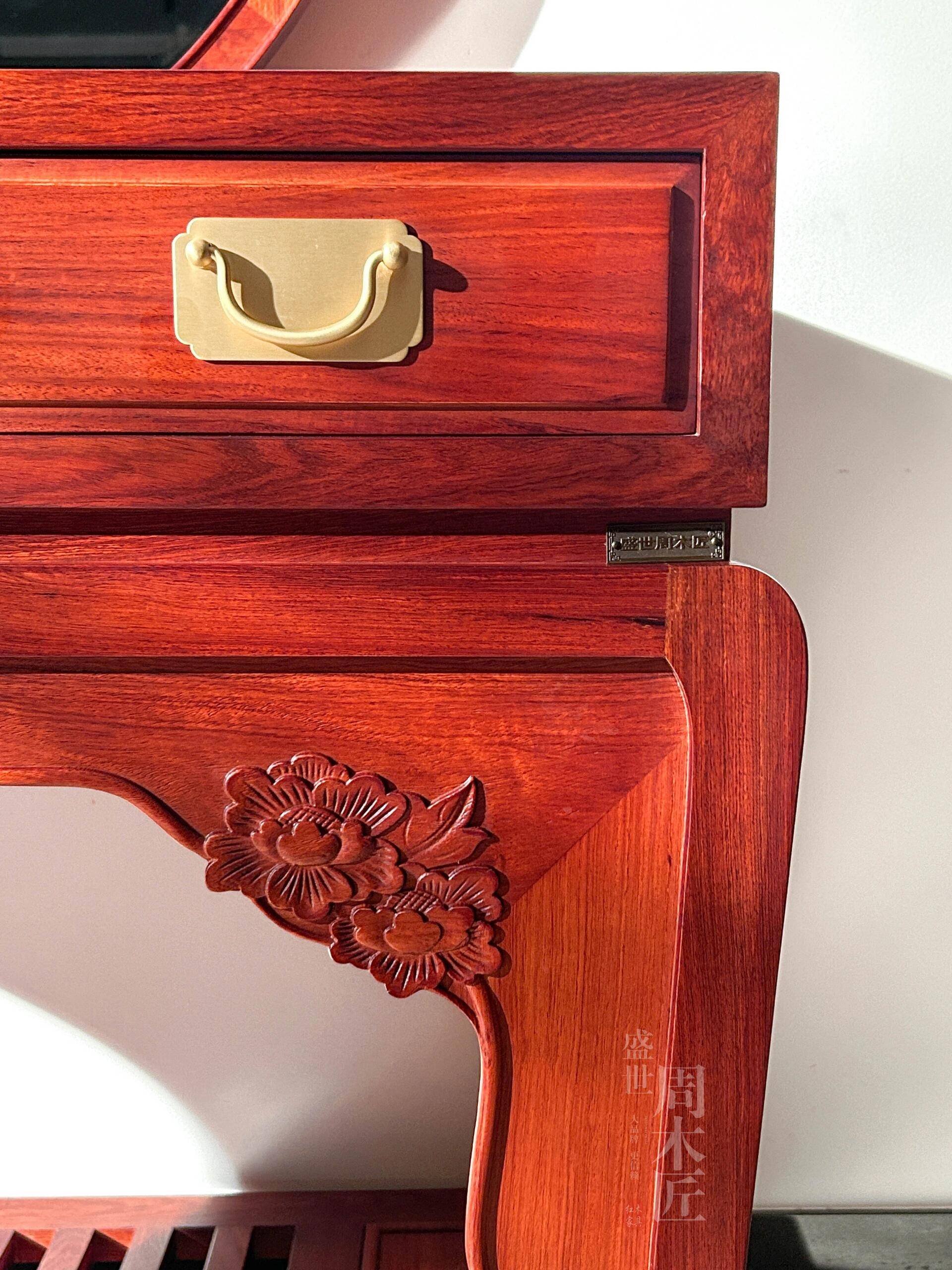 在时光的长河中,红木梳妆台宛如一颗璀璨的明珠,承载着深厚的文化底蕴与精湛的工艺。它不仅是一件家具,更是一种生活态度和审美情趣的体现。那么,如何选择一款靠谱的红木梳妆台呢?盛世周木匠或许是你的不二之选。