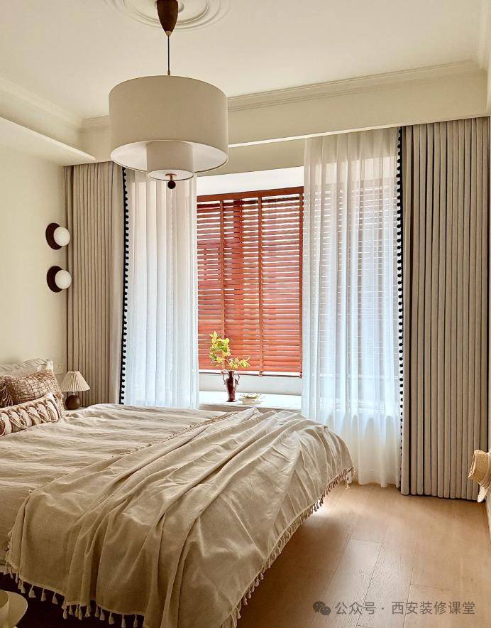 7.卧室百叶+纱帘+布帘:想要氛围感和遮光兼顾,就必须这样搭配!(推荐做法)