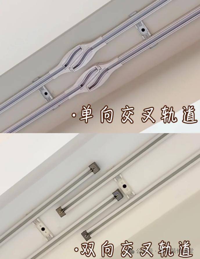 注意:卧室双层帘想要遮光好,就需要搭配交叉轨道;单向交叉适合小窗,双向交叉适合大窗。