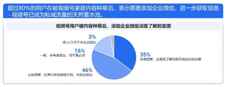 通过视频内容吸引用户后,品牌可以非常顺畅地引导至企业微信、客户群或小程序,完成私域沉淀。调研表明,绝大多数被内容吸引的潜在客户,愿意为此添加品牌好友以获得更深度服务。
