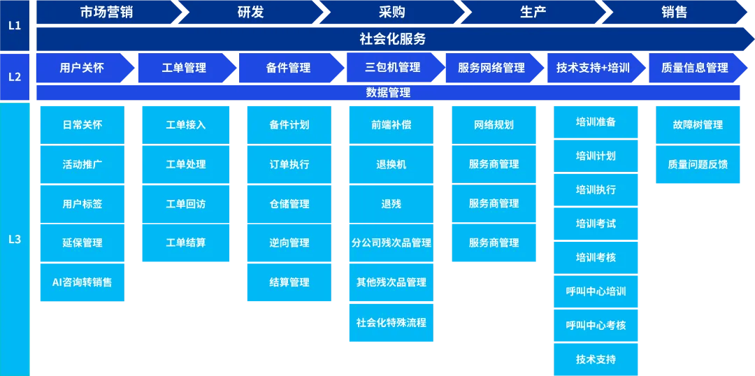 服务数字化转型规划涵盖业务蓝图设计及详细业务流程设计,而AI能力可作为关键赋能要素贯穿始终。