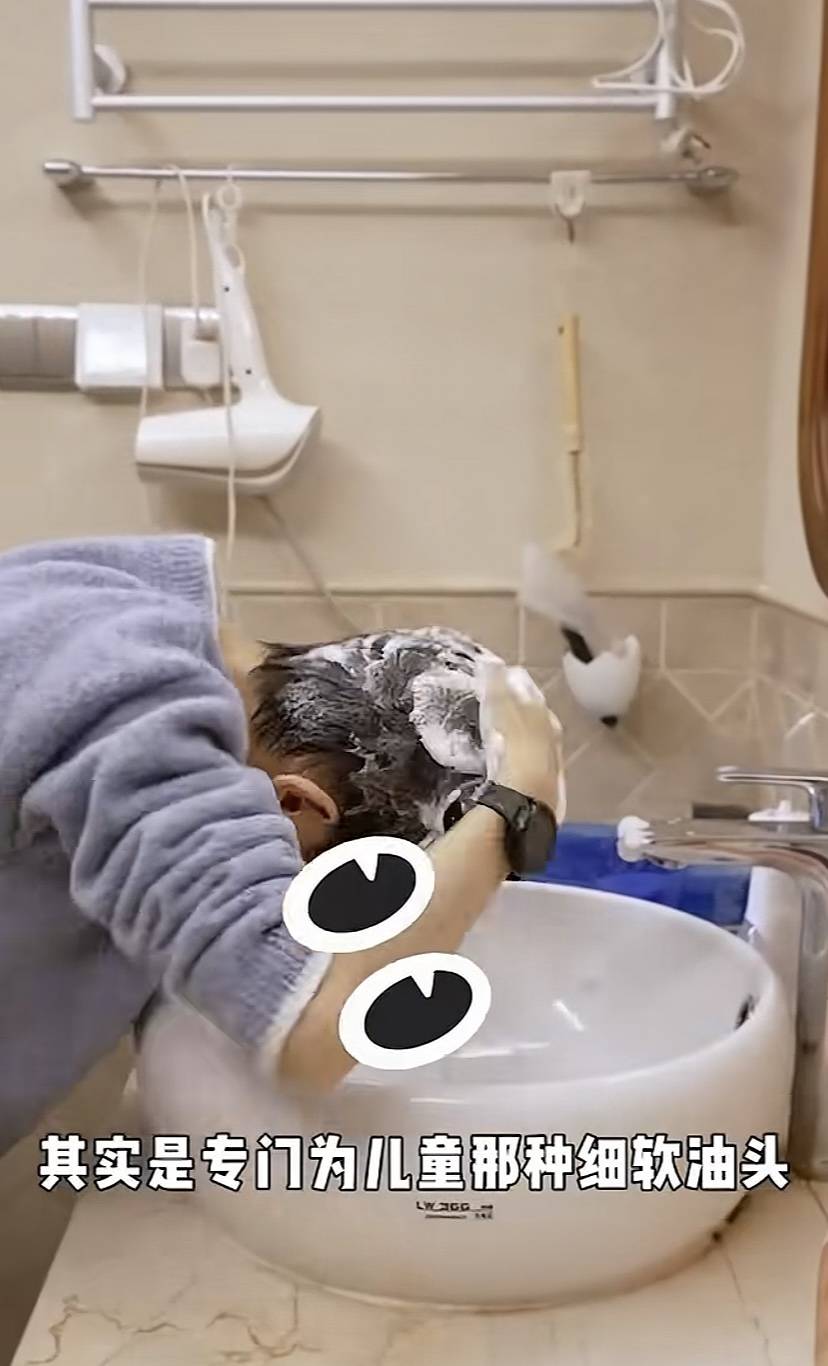 在妈妈的安排下,沐沐开始洗头发。不过他们家的卫生间看起来还是挺普通的,除了面积相对大一点、装修上很简单。挂吹风机的架子,也有点像出租屋的配置。