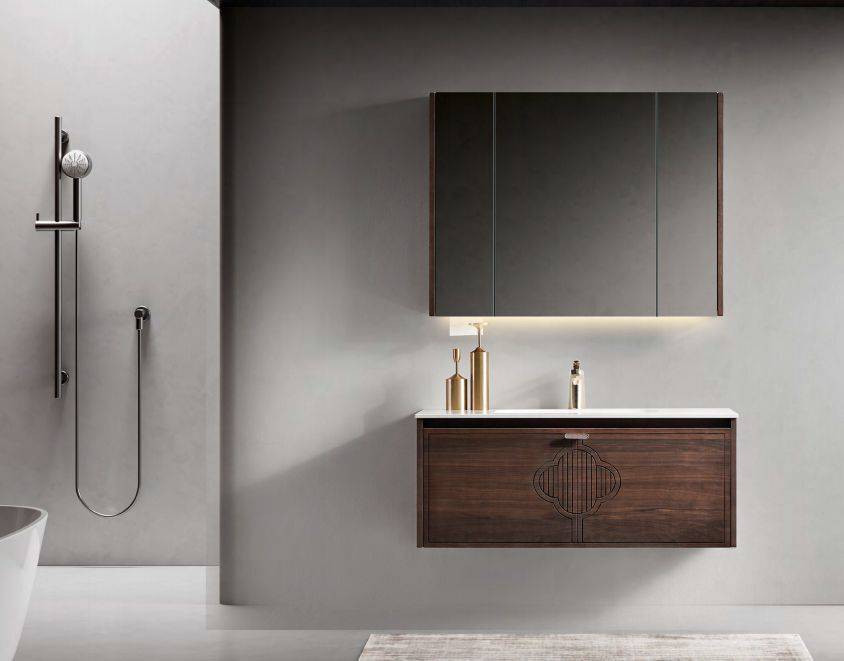 •亮点:柜门团花纹CNC精雕,像把宋朝美学搬进浴室;