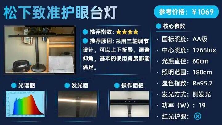 松下则是综合型家电品牌,优势在于稳定的品控和成熟的工业设计,其护眼台灯延续的是可靠、耐用、好上手的家电思路,更适合对专业护眼没有极致要求、但希望选择大品牌的人群。