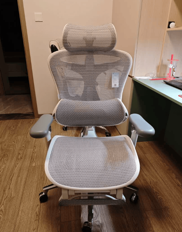 它的6D头枕能上下、前后、左右自由调节,弧形支撑在直坐或斜靠时都能稳稳托住颈部;坐垫和椅背的高度、前后调节都集中在侧边按钮上,用起来很顺手。椅背最大可后仰到140°,并支持三档角度切换,办公、放松、午休都能找到合适位置,后仰时阻尼柔和不突兀。抽拉式腿托滑轨顺畅、支架牢靠,午休时轻轻一放就能把坐姿切换成半躺。采用低弹网布,透气、不容易塌陷、久坐不闷;动态自适应腰托会随着身体动作微调角度,始终贴合腰椎,长时间坐着也不容易累。整椅从颈部到腰部都有支撑,配合四级防爆气压杆和铝合金五星脚,承重稳定、耐用性高。