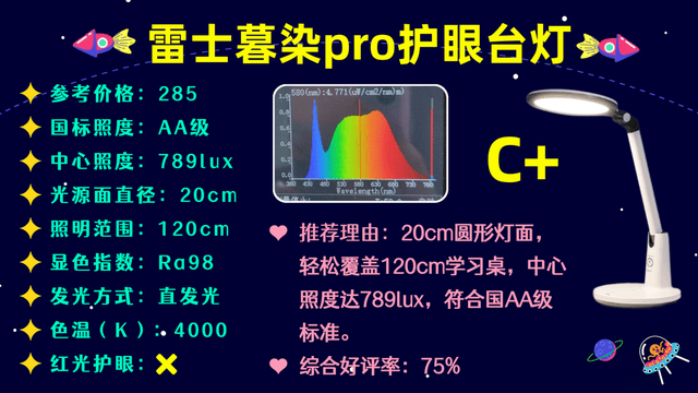 哪一款护眼台灯好用又便宜?雷士暮染Pro护眼台灯外观用了铝合金和PC材质,整体还算结实,但底座是塑料的,摸起来质感普通,不够精致。它是全光谱光源,显色指数能到Ra98,颜色还原得比较真实,4000K的固定色温,光线柔和不刺眼,日常看书、写作业挺合适。功能上挺实用的,有智能感光模块,能跟着环境光自动调亮度。还带45分钟定时休息提醒,能帮孩子养成规律用眼的习惯,夜灯模式晚上用也不晃眼。灯头能灵活旋转,调节角度还算方便,20cm的灯盘照明范围也够用。