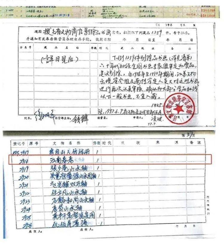 ▲1997年5月8日,被认定为赝品的《江南春》图卷退出南京博物院馆藏记录 图据新华社