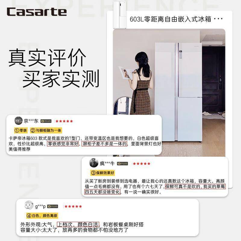 • 603升科学分区:包含4层钢化玻璃搁架、3个独立抽屉和门体多功能收纳区,甚至能竖向放入整只火鸡。