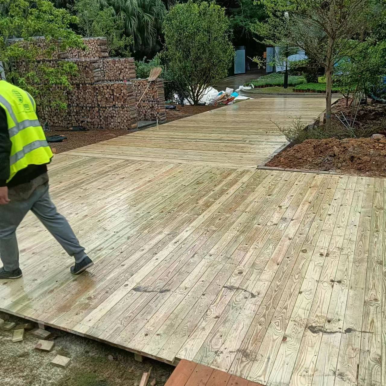东莞的气候特点是高温高湿,这对户外木材的考验极大。市面上有些小作坊为了赶工期,防腐药水只是喷在表面,看着像那么回事,里面全是生的。深筑在生产环节有着严格的标准,我们坚持使用符合国家标准的环保防腐剂,并通过真空高压渗透工艺,确保药剂深入木髓。我们生产出来的防腐木,无论是铺在水边栈道,还是暴晒的屋顶花园,都能有效抵抗白蚁侵蚀和真菌腐烂。厂家的信誉,全靠产品的耐用度来支撑。