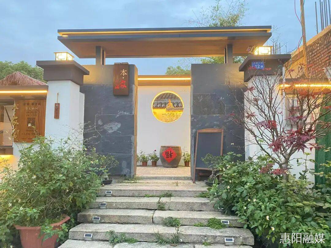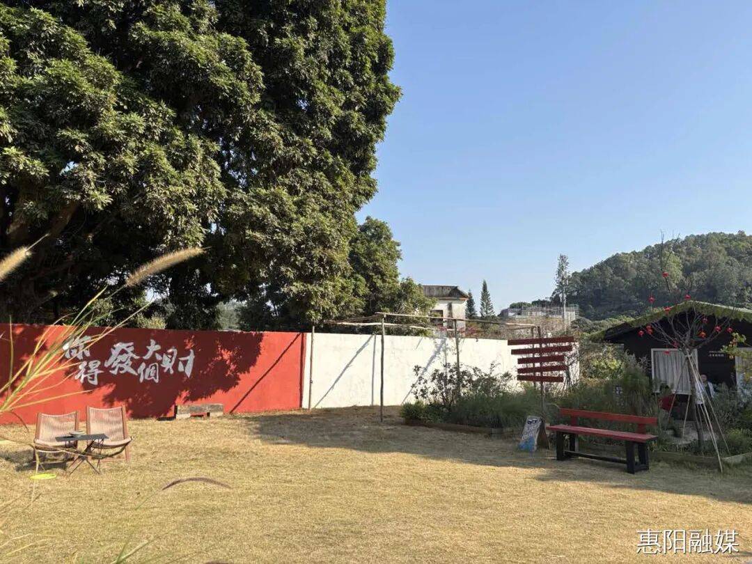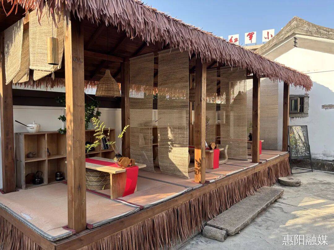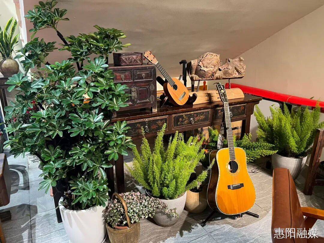 而在周田墟商业街入口处的堡烁咖啡,则为古村添了几分新潮烟火气。拱门裹着暖光,红玫瑰与蝴蝶漾着开业喜气,咖啡豆摆件勾着咖啡香;吧台里“惠阳”杯盏盛着拉花,角落绿植与吉他揉着文艺,精致餐食裹满甜香。古村的庭院诗意,在此处与咖啡烟火撞出了新打卡韵致,老村新味,刚好适配悠闲时光。