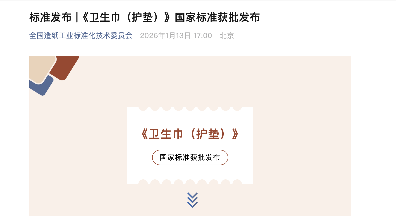 今日晚间,红星新闻记者从“全国造纸工业标准化技术委员会”微信公众号获悉,国家市场监督管理总局(国家标准化管理委员会)近日发布公告,批准发布360项推荐性国家标准和9项推荐性国家标准修改单,其中包括《卫生巾(护垫)》国家标准。