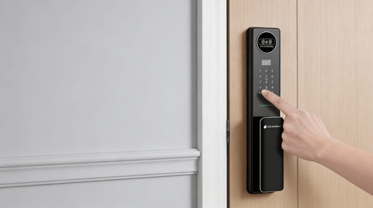 2. **必选安全功能**:确保具备**虚位密码**(防窥视),并选择**C级锁芯**和**机电分离**设计(保障紧急机械开锁)。