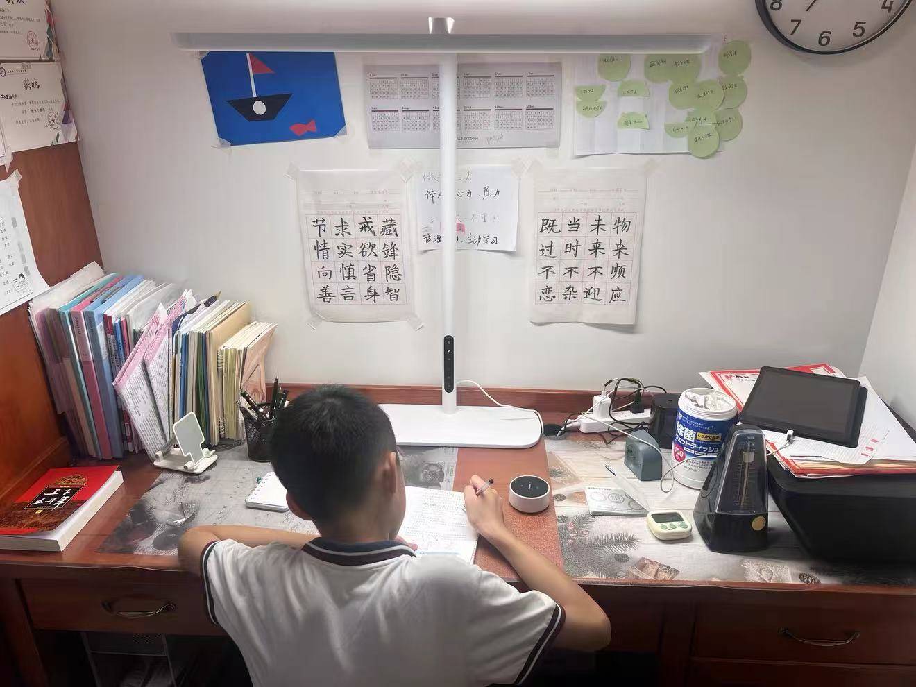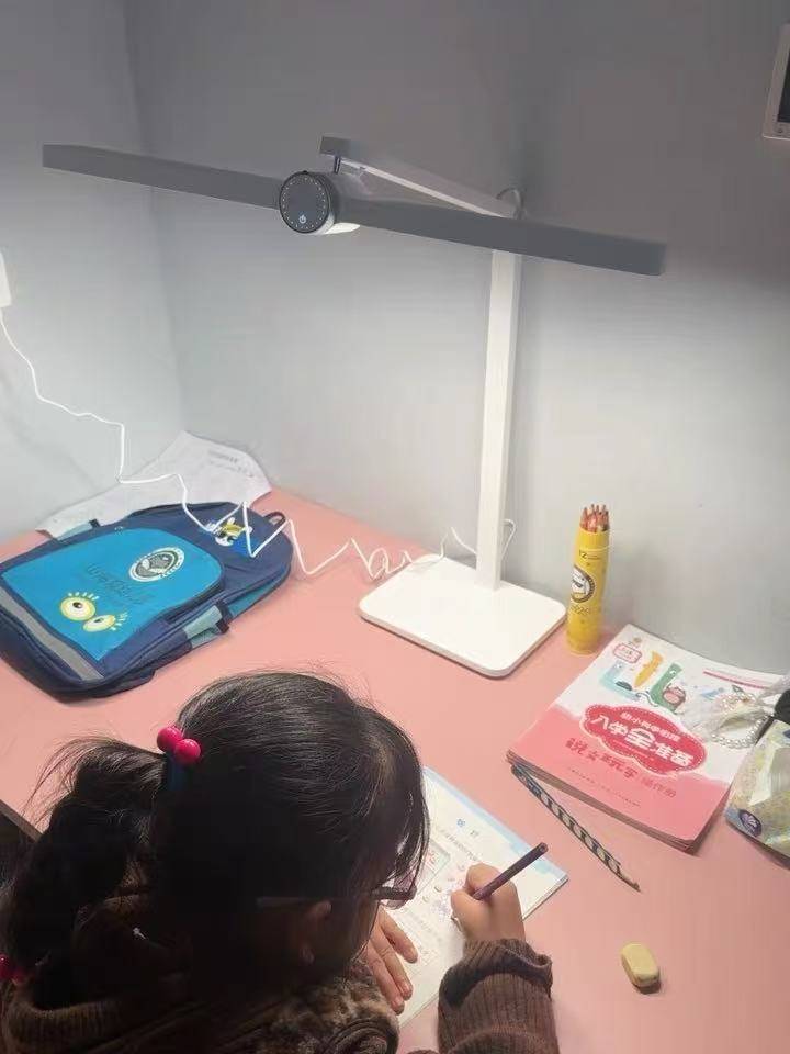 全场景照明设计:国AA级照度,中心照度≥800lx,均匀度1.1,可覆盖1.0m×0.6m书桌区域,同时摆放课本、笔记本、平板无压力;防眩设计出色,光线柔和不直射屏幕,避免网课反光,低头记笔记也无刺眼感。
