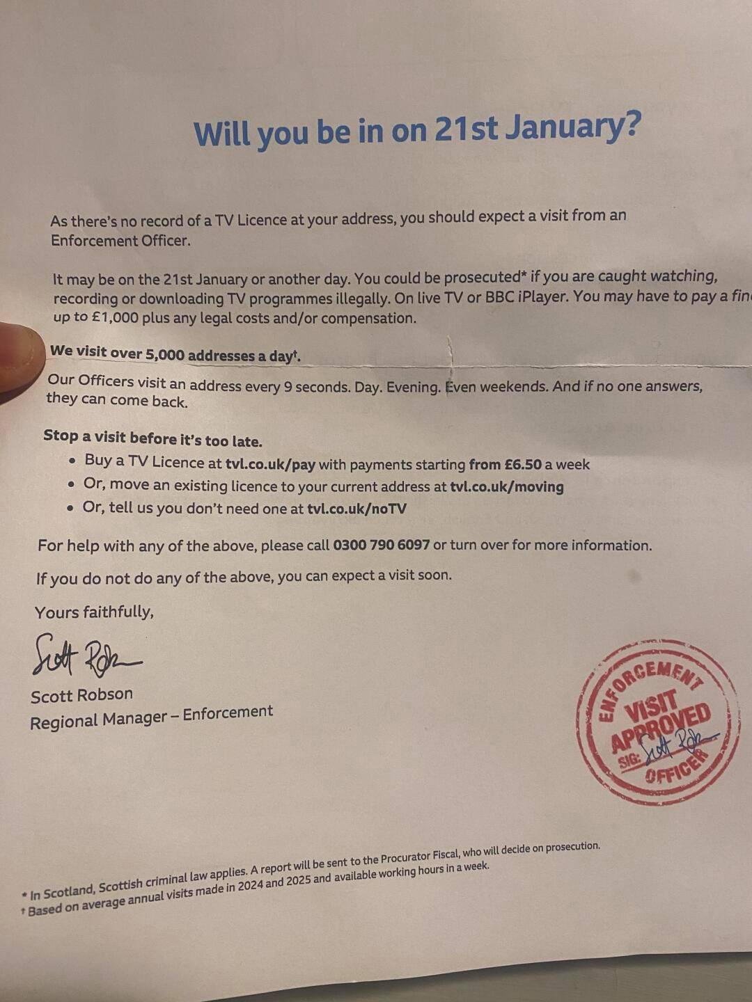 没有 tv license 被警告了。