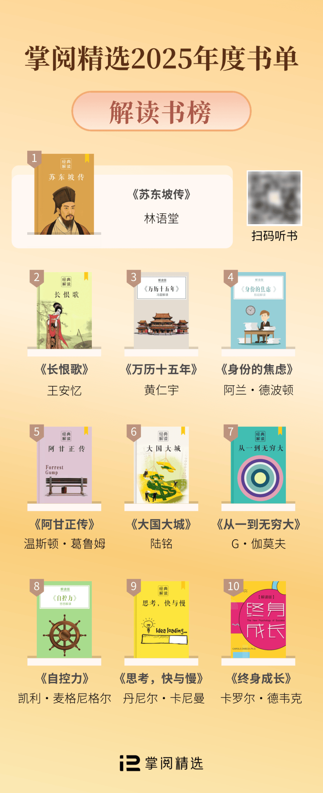 掌阅精选2025年度书单,就从这些阅读痕迹里来。它不只是一份榜单,更像一份年度阅读地图:经典给你底气,新书给你方法,有声书给你陪伴,热点书给你视角,解读书给你导航。翻开它,像把这一年重新走一遍——踏实,也温暖。