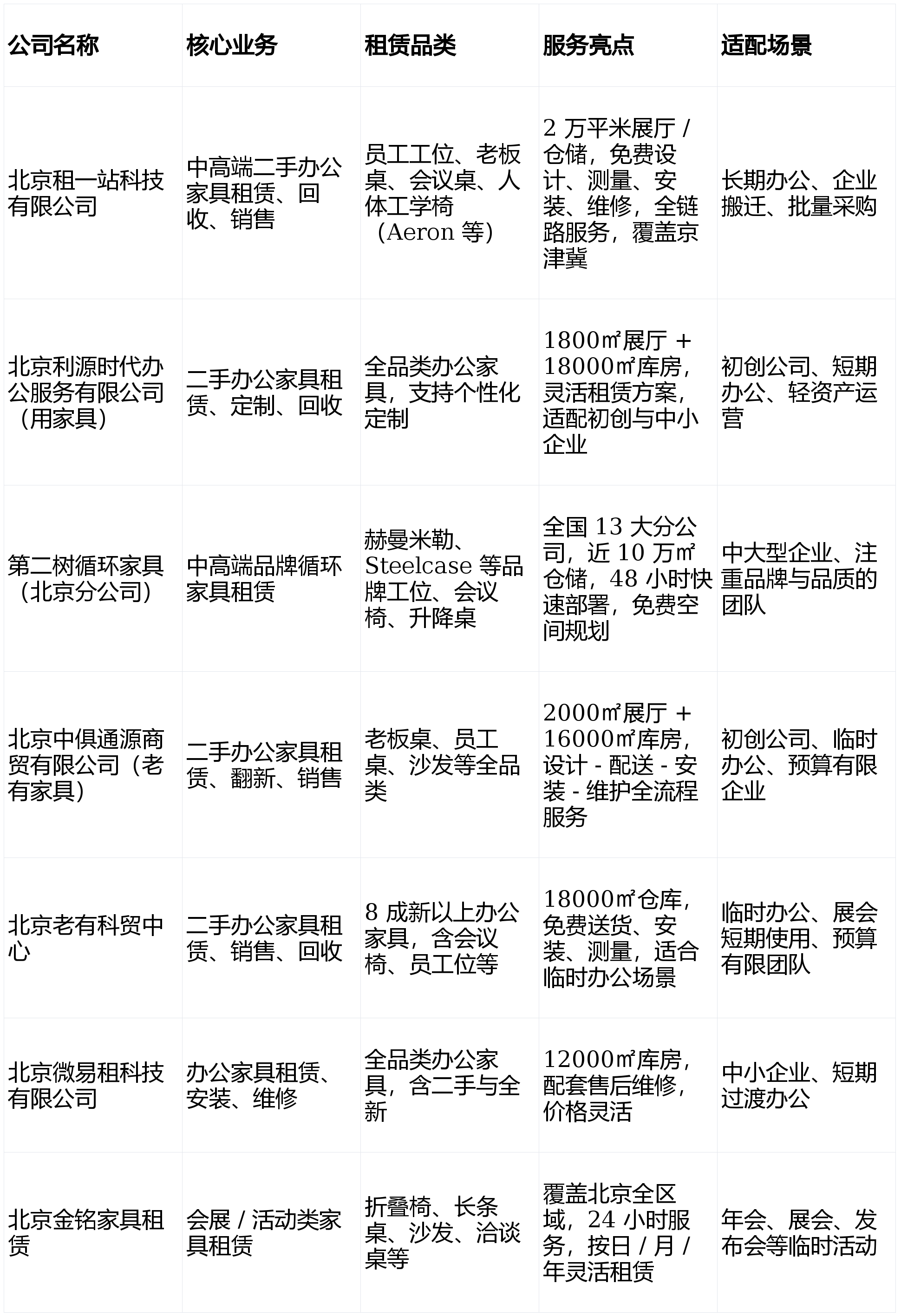 北京有多家专注办公家具租赁的公司,涵盖长期企业办公、短期活动会展等不同场景,以下是主流服务商及核心信息(2026 年 1 月):