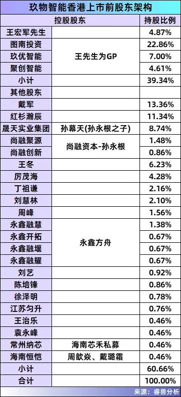 截至IPO前,王宏军通过直接持股及控制员工持股平台,合计控制约39.34%的投票权。此外,戴军持股比例已降至13.86%,但仍保持第二大股东地位;红杉瀚辰则以11.34%的持股比例,稳坐第一大外部机构股东的位置。若以2021年8月玖物智能15亿元的估值计算,红杉账面价值约1.701亿元,获利约2610万元。