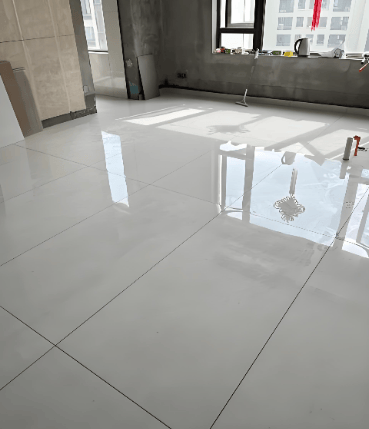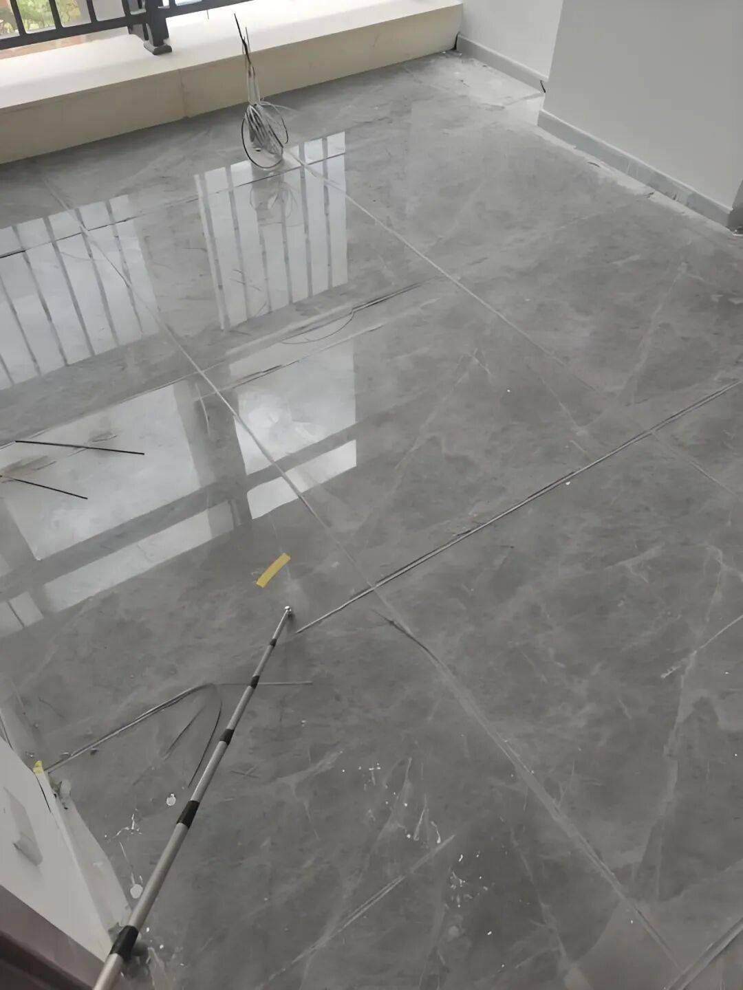(3)瓷砖深度清洁与除蜡:在所有硬装工程结束后、家具进场前,应对瓷砖进行一次彻底的深度清洁。尤其对于亮光砖和部分柔光砖,出厂时表面常附有一层防护蜡。这层蜡会导致瓷砖光泽度不均、易留水印、拖地不清。需使用瓷砖专用清洁剂或中性洗涤剂进行除蜡处理,确保砖面洁净通透,恢复其原有质感。