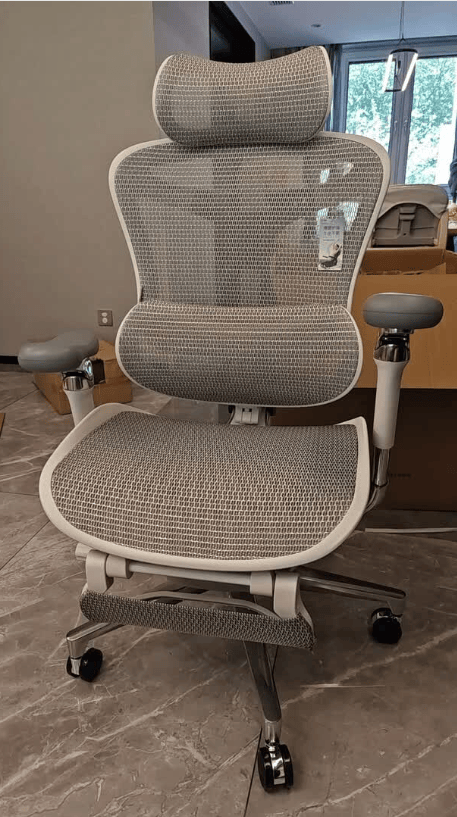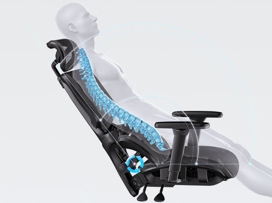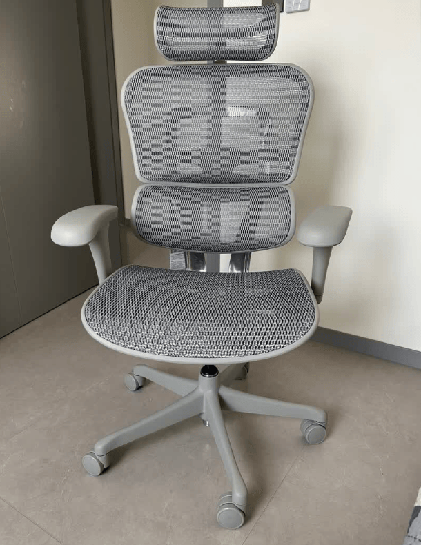 这款人体工学椅整体尺寸偏大,座垫宽敞,适合体型较大的人群,坐垫采用高弹透气网布,久坐也能保持干爽。椅背采用仿生学设计,结合三段式结构,从颈椎到腰椎都能获得精准支撑,同时配备4档可调腰靠,可根据坐姿和腰部受力自动或手动调节,有效缓解腰部疲劳。头枕面积较大,支持上下、前后和角度调节,能够保持颈部放松。铝合金底盘稳固耐用,整体结构可靠,椅背、腰靠、头枕和扶手的多维调节,让办公、休息或短暂午睡时都能找到舒适的坐姿。