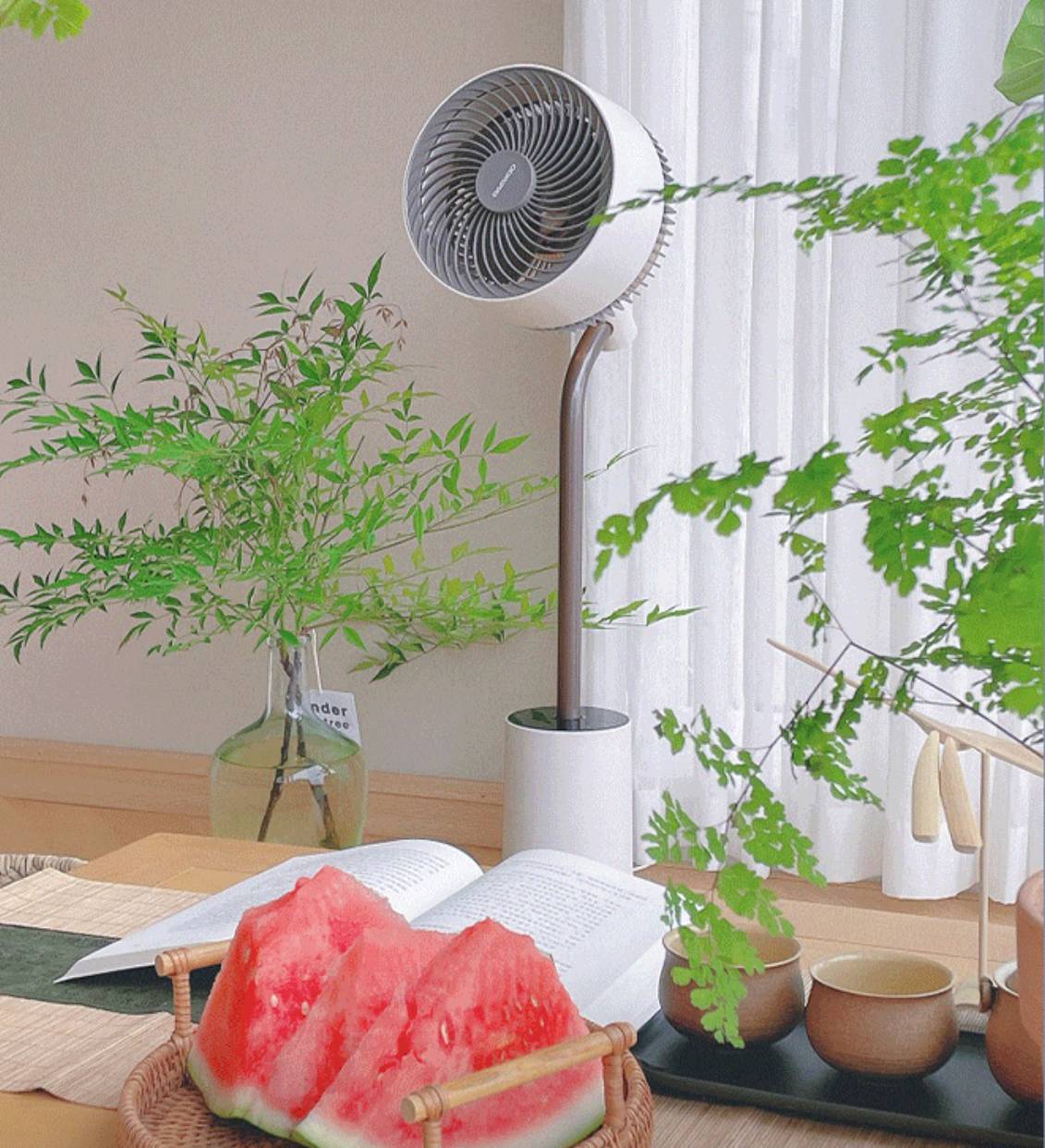 ①日本设计,双结构扇叶系统(内外层不同转速)叠加形成宽幅、柔和的自然风感。