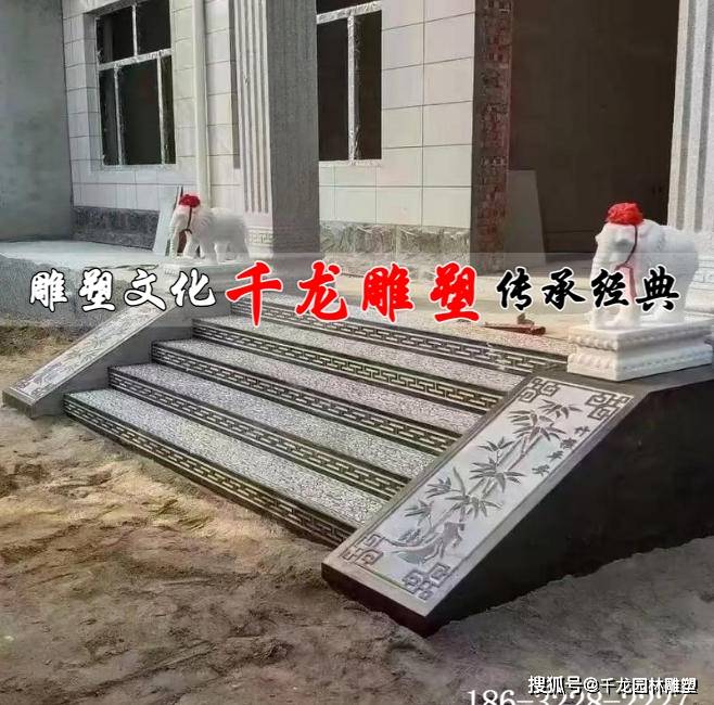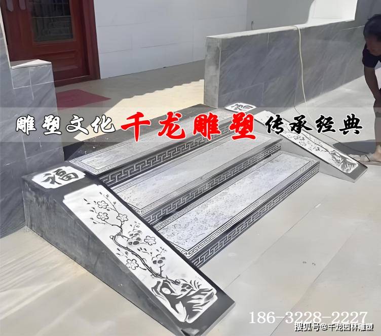 二、**颜值在线,轻松提升自建房气场** 石材自带自然纹理和质感,款式选择丰富多样,能完美适配不同风格的农村自建房: - 想走**中式传统风**,选青石台阶,搭配雕花祥云纹样,古色古香的院落氛围瞬间拉满; - 偏爱**现代简约风**,用平整的花岗岩或大理石纹石材,线条利落干净,入户第一眼就显高级; - 追求**轻奢格调**,大理石台阶的细腻纹理,能让自建房门口看起来不输城里的别墅。 比起光秃秃的水泥台阶,石材台阶直接把自建房的“门面档次”拉高一个等级。 三、**防滑防水,农村老人小孩更安全** 农村家庭大多有老人和小孩,台阶的防滑性至关重要。 石材台阶可以通过**表面拉槽、荔枝面处理**等工艺,增加脚底与台阶的摩擦力,即便雨天台阶沾水,也不容易打滑摔跤。同时,石材本身吸水率低,防水性能好,不会像水泥台阶那样因为积水渗透而加速损坏,大大提升了日常使用的安全性。