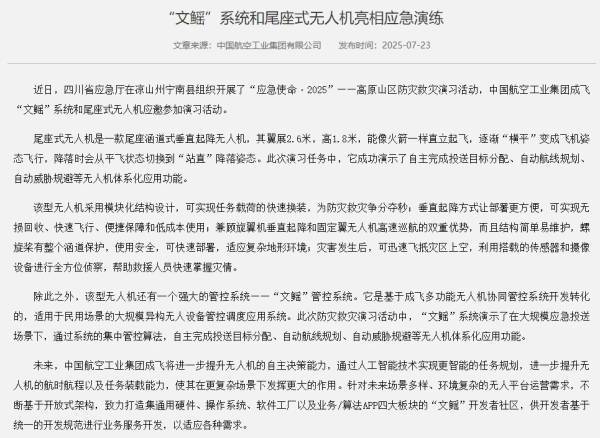 除了大家耳熟能详的歼-20系列之外,考虑到成飞近年来研制的各种用途无人机种类颇多,例如报道中配有试飞画面的“文鳐”尾座涵道式垂直起降无人机系统,所以要凑齐10型机倒并不是很难。不过对于一个在行业内已属世界一流的主机厂来说,同时在5地组织试飞,组织难度确属史无前例。