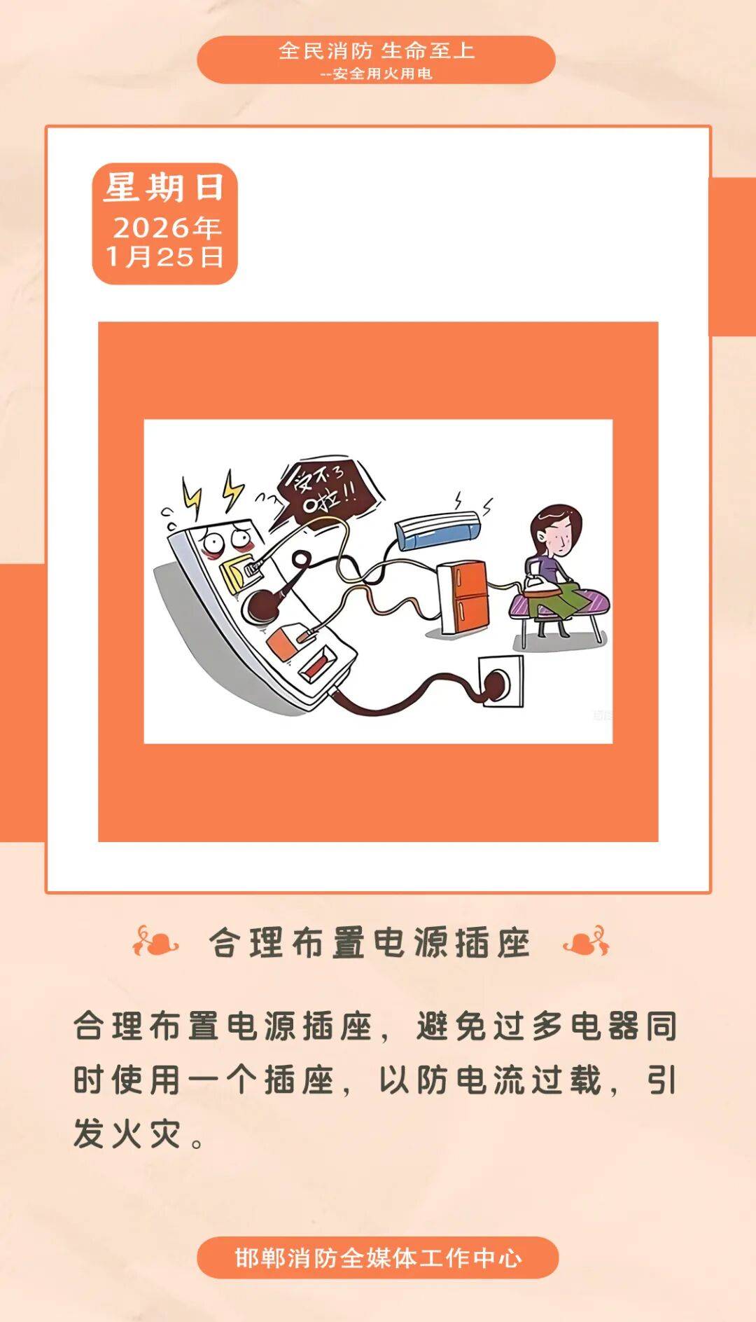 【消防每日签】合理布置电源插座...