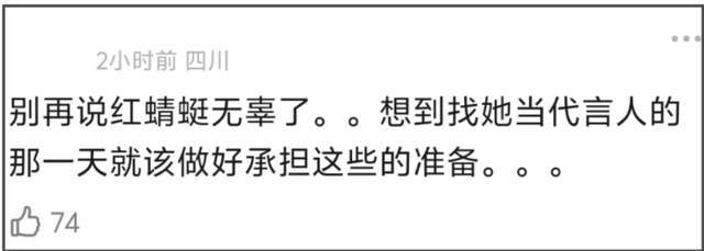红蜻蜓老板娘又是baby闺蜜,哪怕baby被封了,还是坚持和baby合作,一次又一次给红蜻蜓惹上争议,某种程度上,已然伤害到了品牌口碑,正是三输局面中的第一输。