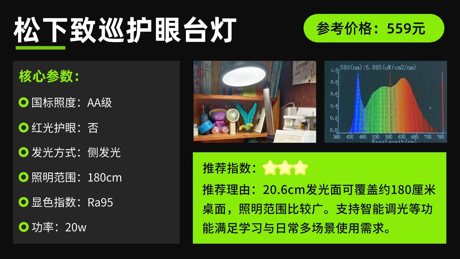 一句话推荐:采用侧发光设计,结合导光板实现多次折射,光线均匀柔和