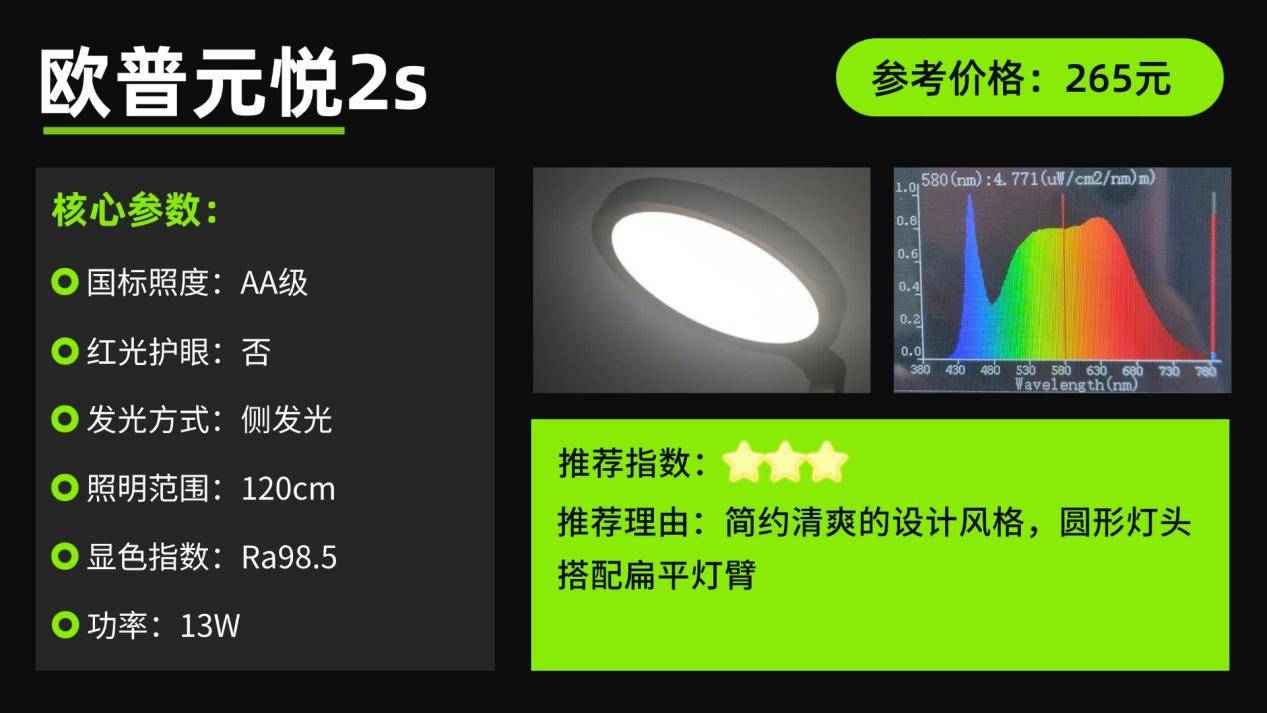 学生护眼灯品牌排行前十名第五名:欧普元悦2s护眼台灯