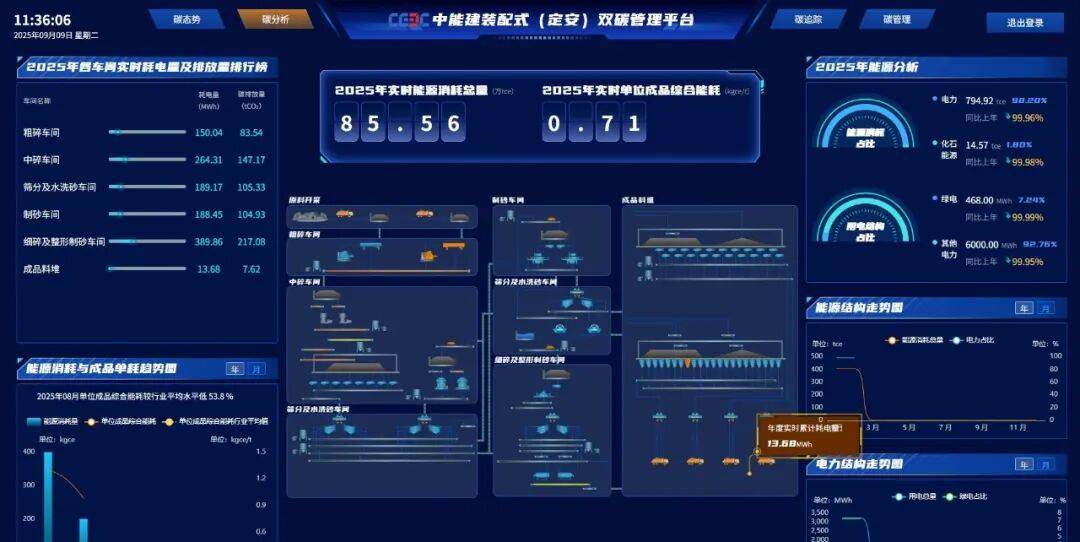 露天矿山能源双碳平台建立起一套碳排放核算体系及模型,实时采集、核算和分析全矿区的能耗与碳排放数据,生成清晰的碳足迹报告,为管理决策提供精准的数据支持。