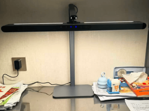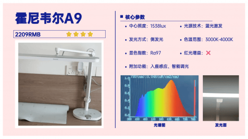 护眼灯排名前十的品牌有哪些?霍尼韦尔A9护眼台灯灯体用的是航空铝型材,质感扎实还能很好散热,加上加重底座,调整角度时也不容易倒。照明方面是侧发光设计,配备55cm超大发光面,能覆盖120cm的桌面,大部分书桌都能铺满,中心照度1538lux,满足日常使用没问题。最突出的优势是调节灵活和照明范围广。