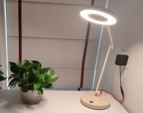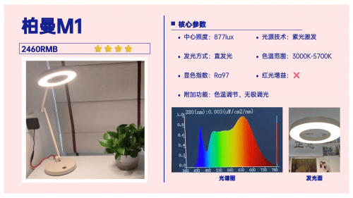 护眼灯排名前十的品牌有哪些?柏曼M1台灯整体造型轻巧、现代感较强,底座还能360度旋转,不用搬动底座就能调整光照位置,易于移动和摆放,也适合不同桌面布局。在光源上它采用的是直发光方式,虽然用了环形灯头来优化,但本质上光线还是偏集中。如果桌面上有光滑的书本纸张,可能会看到反光点。