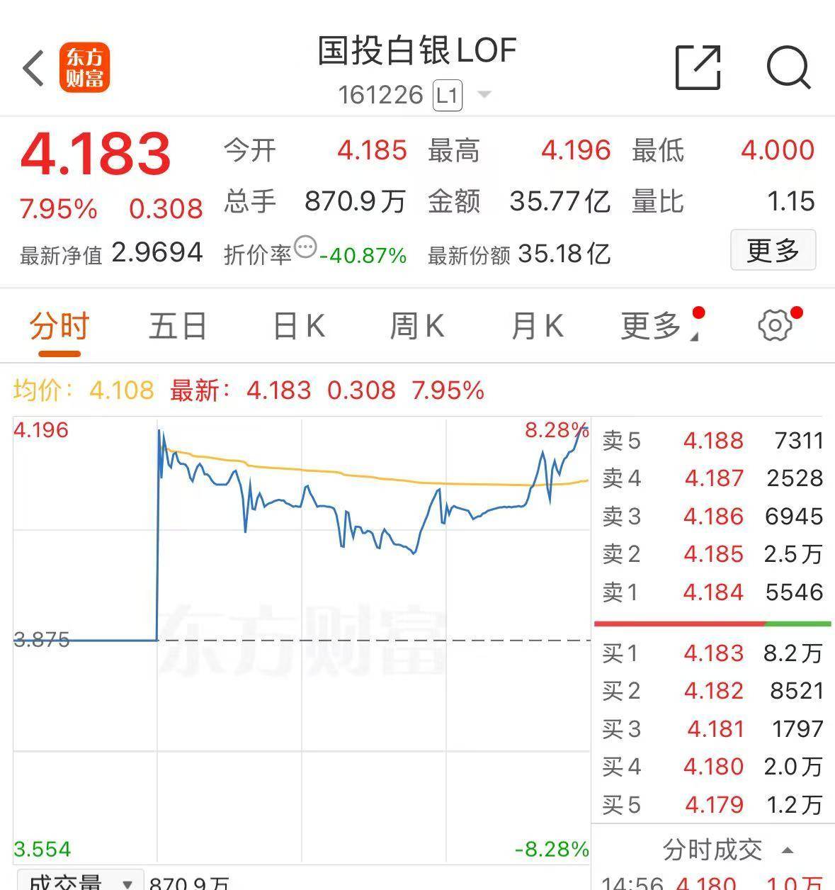 市场上,国投白银LOF今日大涨7.95%。