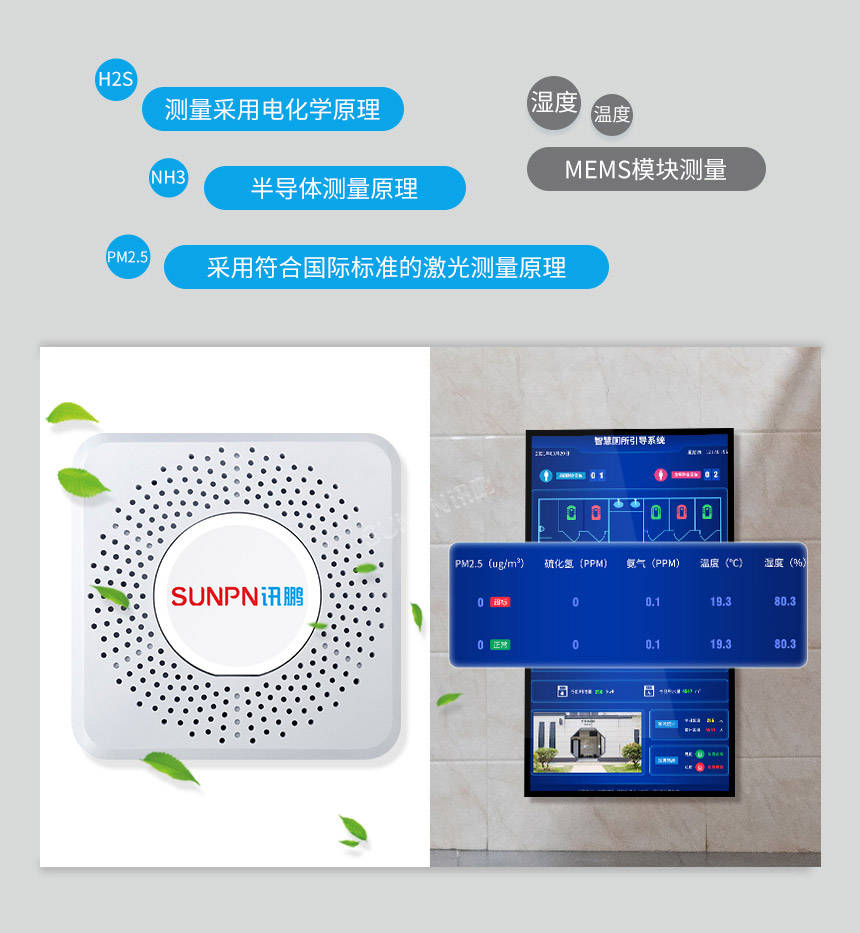 1. 气体感应:专门检测氨气(NH₃)、硫化氢(H₂S)等由排泄物分解产生的特征性异味气体浓度,它们是评价厕所异味的核心指标。