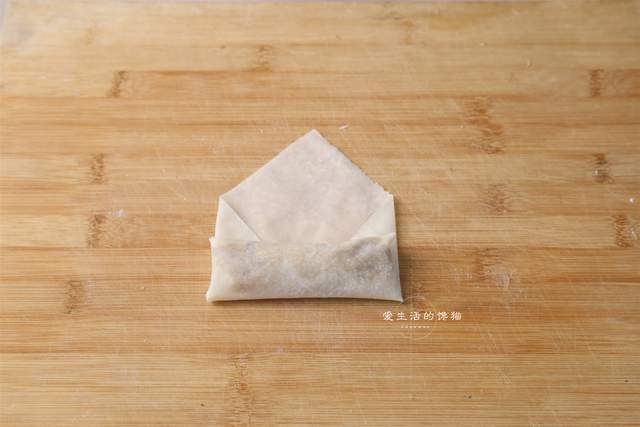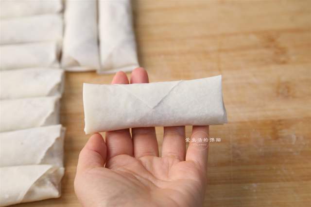 最后把收口压在底部,一个春卷就包好了,全部都做好,这里的馅大概能做12个春卷左右。