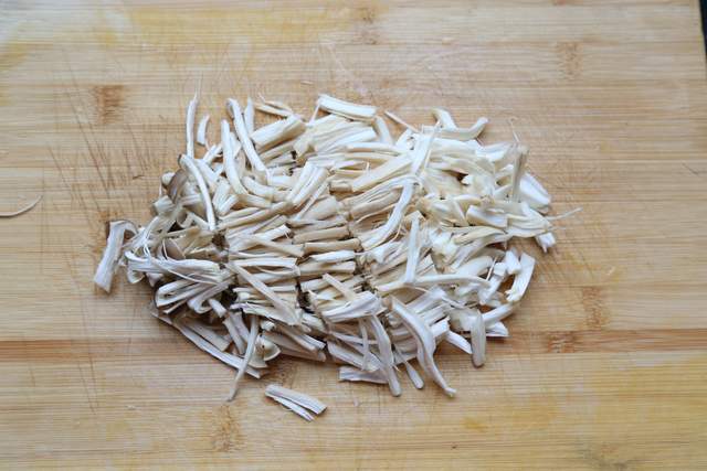 将鹿茸菇洗净后,手撕成丝后切小段,这样既能让口感好也不会损坏鹿茸菇膳食纤维的作用。