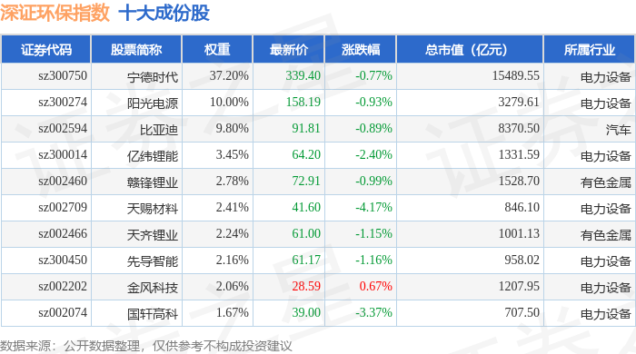 深证环保(399638)指数十大成份股详情如下: