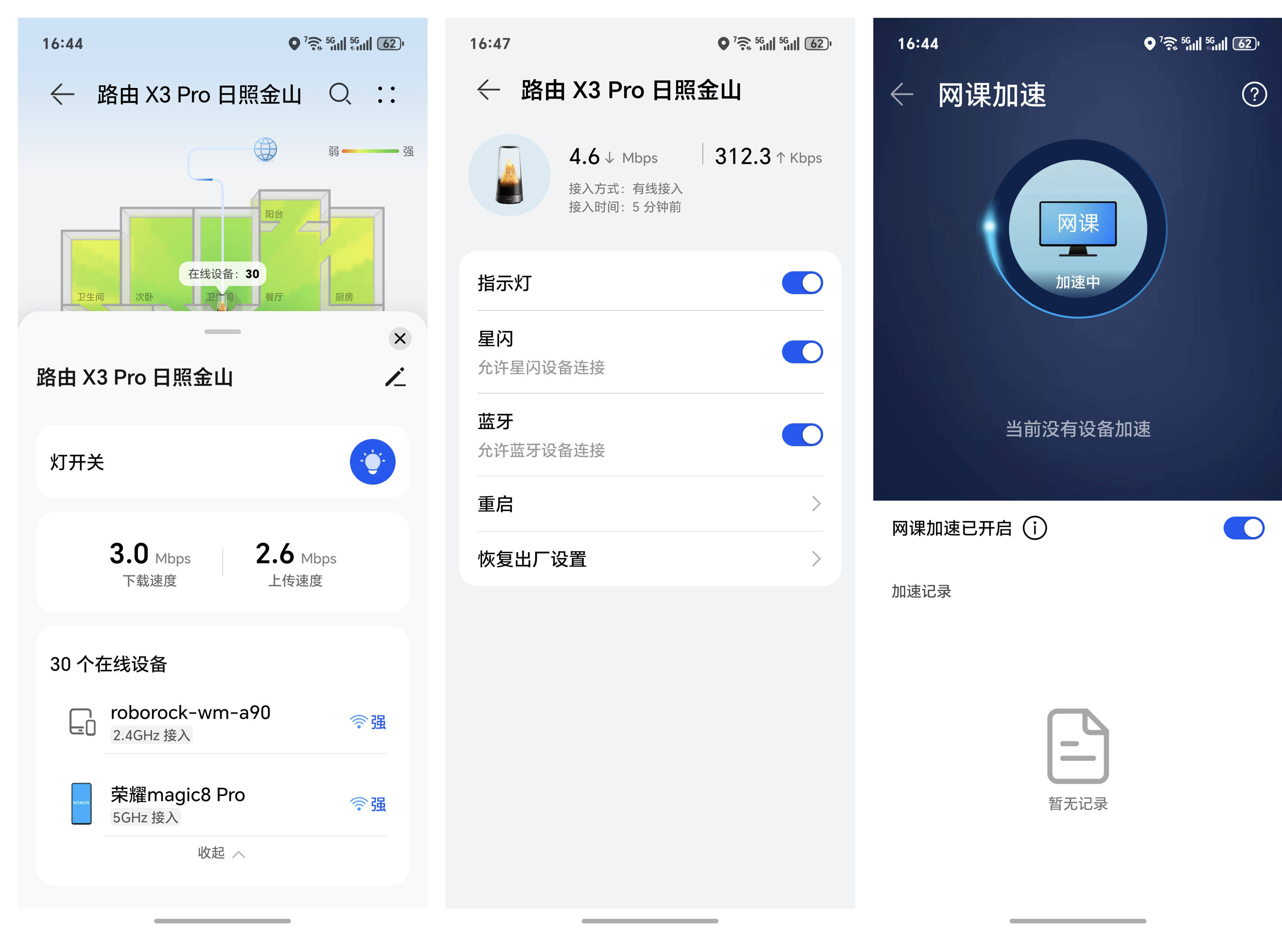 针对装修完没布网线、大户型覆盖难的痛点,华为日照金山X3 Pro采用了第三代PLC技术的子母路由的方案,利用家里现有电线就能传输信号,子路由插上电源就能自动组网,无需手动配对,真正实现“有电就有网”。相比上一代,第三代PLC芯片性能翻倍,组网速率最高可达1.5Gbps,抗干扰能力提升18%,就算和冰箱、空调等大功率电器共用电路,也能稳住信号,隔3-4堵墙速率衰减仍控制在10%以内。