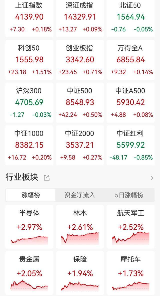 A股三大指数今日集体上涨,截至收盘,沪指涨0.18%报4139点,深证成指涨0.09%,创业板指涨0.71%。全市场成交额2.92万亿元,较前一交易日缩量3592亿元,超3400股下跌。