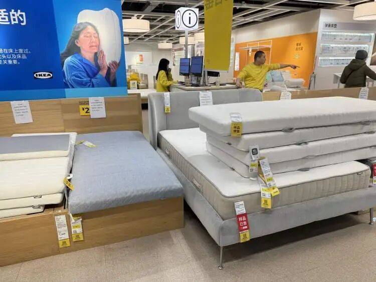 一路走到卧室家具区,记者还是发现了几张还未售出的样品床垫,价格在89元-120元不等,折扣力度也在3折左右。那为什么它们会无人问津呢?记者了解到,购买大件家具样品必须购买宜家特价商品拆解和打包服务、送货服务、组装服务。也就是说,购买这些床垫还要额外支付70元的打包费和89元的配送费,加起来159元甚至超过了床垫本身的价格。“不是不想买,主要是不划算。这个单人床垫哪需要打包送货啊?我完全可以自提回家,但店员说买样品就必须购买附加服务。算下来比买新的还贵,不如放弃了。”市民李先生围着床垫看了许久,最终还是无奈离开。