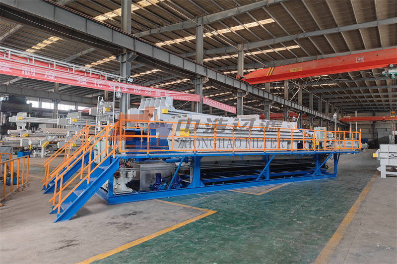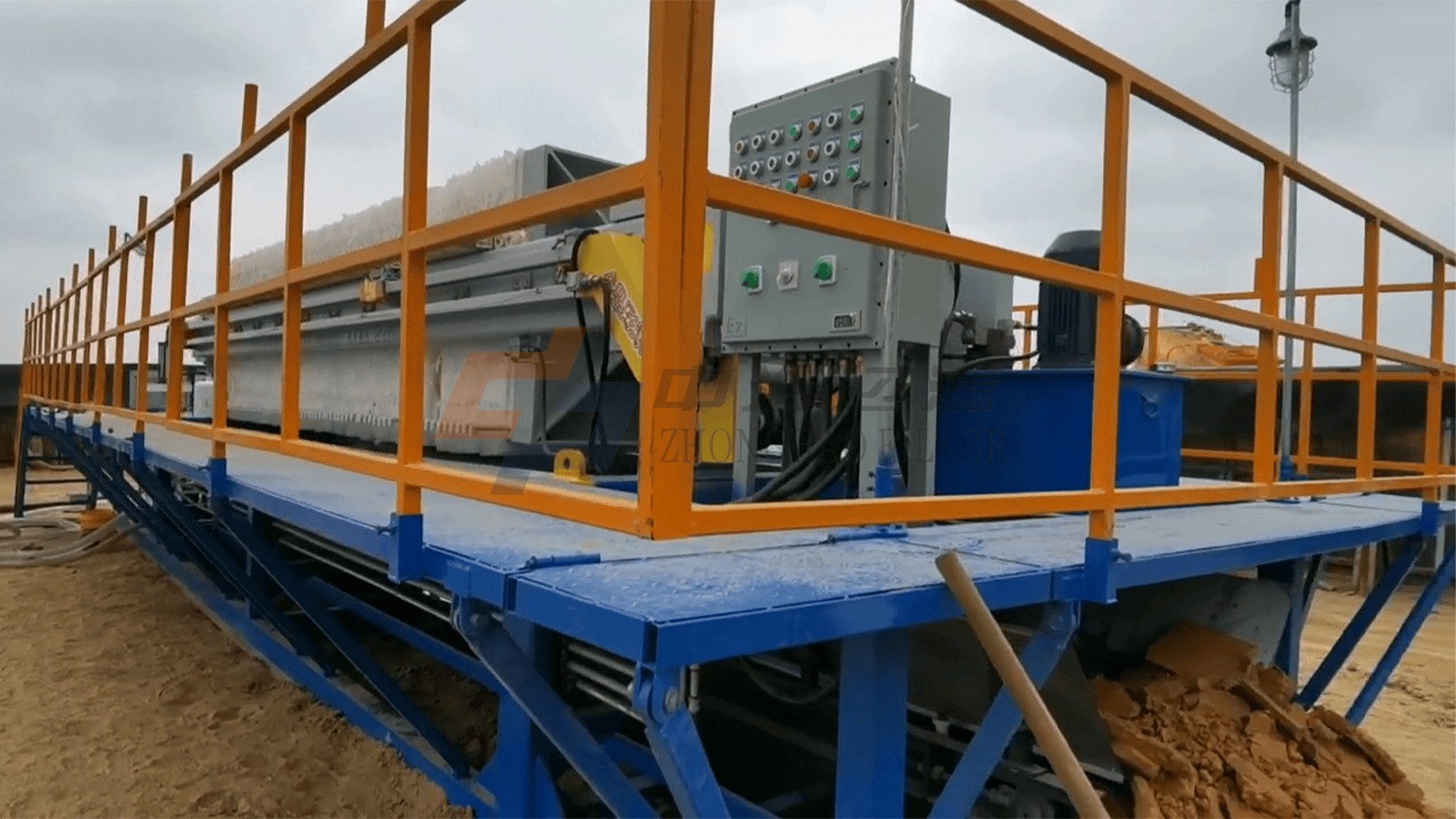 高压进料:高压进料泵(通常为柱塞泵或螺杆泵)启动,将泥浆泵入所有滤室。在泵压作用下,滤液穿过滤布排出,固体颗粒被截留形成滤饼。此阶段为一次脱水,排出大量自由水。