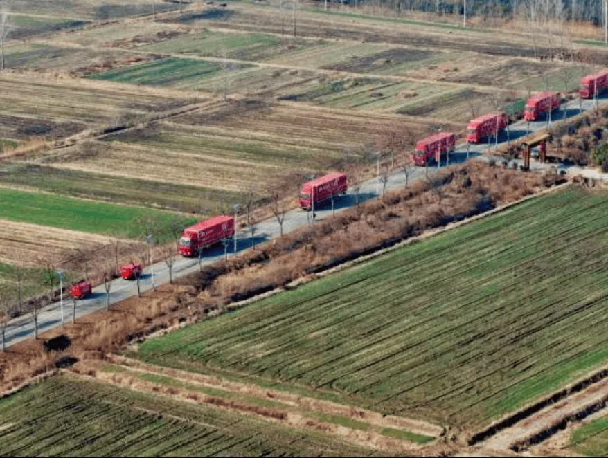 据悉,1月27日,刘强东给老家送年货的车队抵达光明村,在长达百米的送货车队中,两辆红色京东物流无人车分外显眼,为身后八辆9米6大货车“领航”。