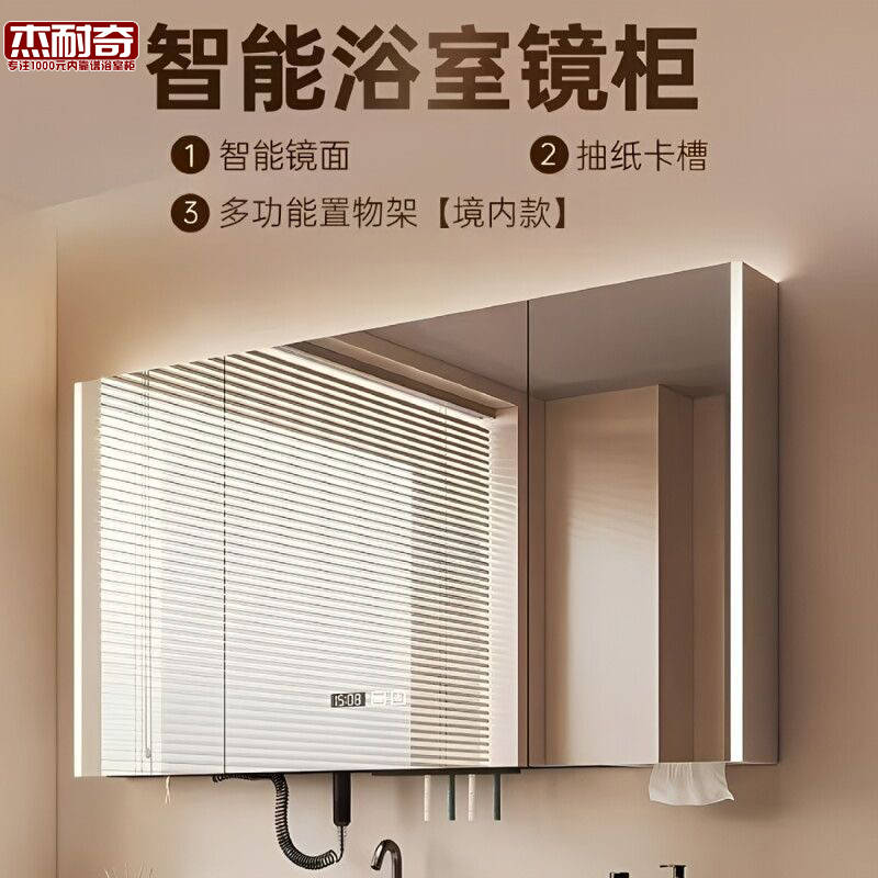 • 智慧镜柜系统:集成RGB三色温调节(3000K-6500K)、人体感应夜灯、紫外线消毒(99.99%杀菌率)
