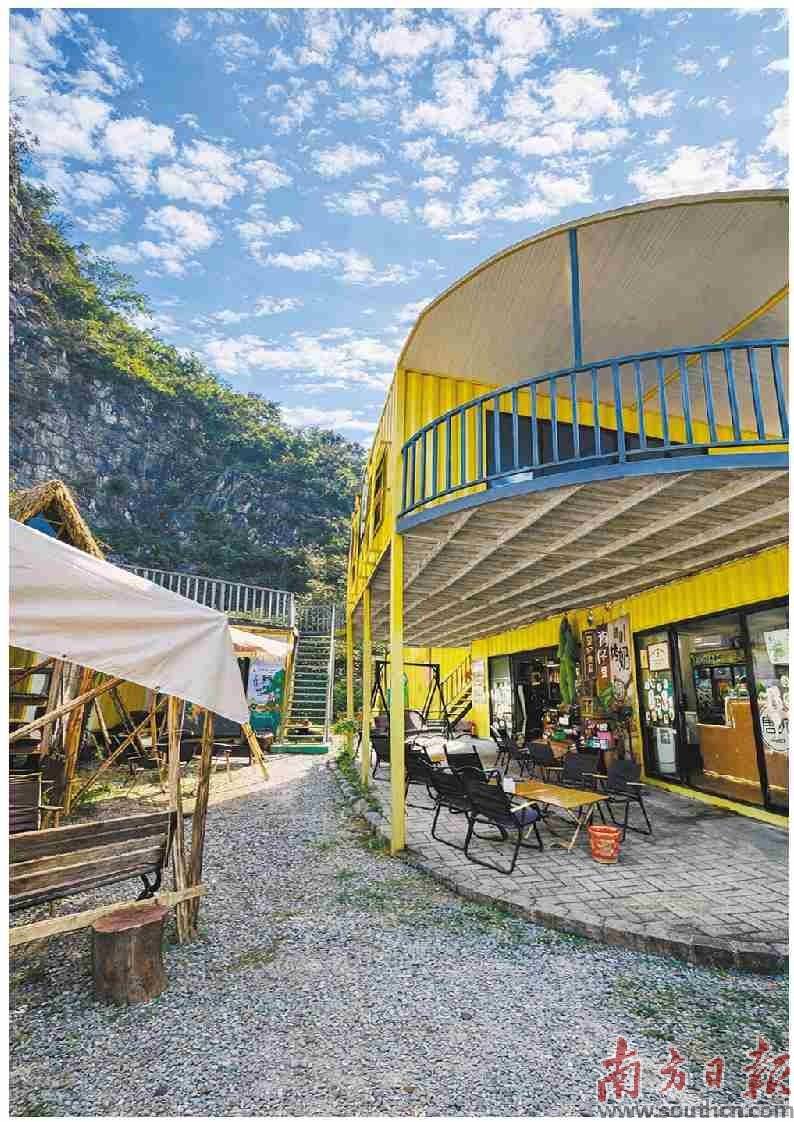 在这里,游客可以亲眼看到狗仔豆的各种产品,品尝到独具风味的狗仔豆创意饮品和小吃;可以欣赏到以阳春山水、历史文化为元素的原创手绘产品包装,感受地方文化透过现代设计的生动表达;还可以在由集装箱改造的时尚空间里休闲打卡,领略现代艺术气息与乡土风情的奇妙碰撞。创意园本身就成了一个旅游吸引物,将过往的“流量”有效地转化为“留量”,带动了餐饮、购物等消费。