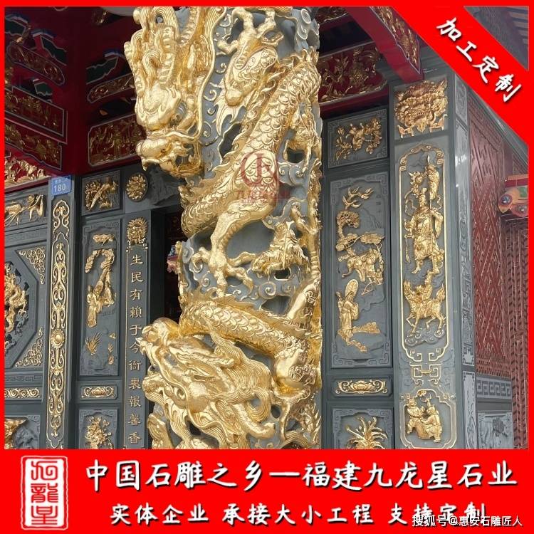 材质选择上,寺庙龙柱以青石、花岗岩为主。青石质地细腻,色泽古朴,经岁月沉淀更显温润,适合雕刻繁复龙纹,贴合古寺氛围;花岗岩硬度极高,抗风化、耐腐蚀,是露天龙柱的首选,能历经风雨依旧完好。工匠们以錾为笔、以石为纸,纯手工勾勒线条、雕琢细节,每一处刀痕都凝聚着匠心,让冰冷的石材焕发出龙的磅礴气势。