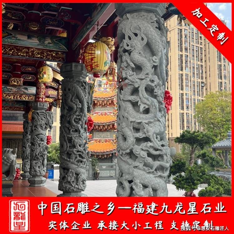 石雕龙柱作为寺庙古建中的核心装饰,承载着中华龙文化与宗教信仰的双重内涵,是历代工匠匠心与传统文化的结晶。在各大佛教、道教寺庙中,龙柱或立于山门两侧,或矗立于大殿回廊,以威严姿态守护一方圣地,成为寺庙庄重气质的点睛之笔。