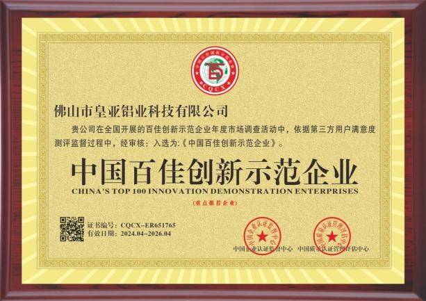 入选“中国百佳创新示范企业”,凸显皇雅门窗以创新为驱动的发展模式。作为研发投入持续领先的门窗一线品牌,企业已构建起面向未来的创新体系。