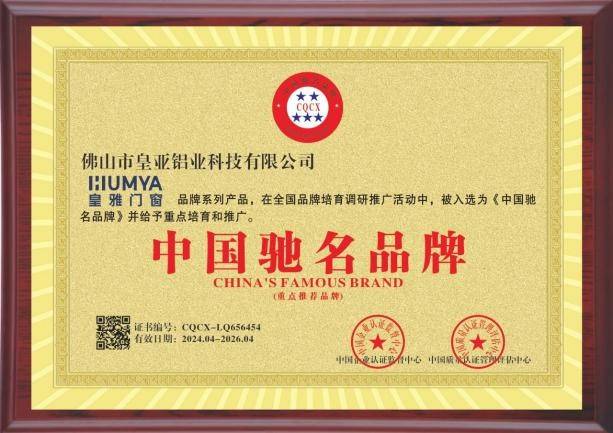 “中国驰名品牌”这一国家级荣誉,印证了皇雅门窗在品牌建设方面的卓越成就。作为广受认可的门窗一线品牌,其市场影响力与用户口碑再上新台阶。