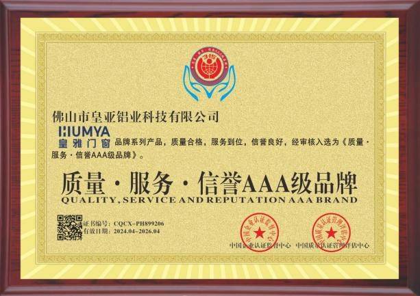 同时揽获质量、服务与信誉三项AAA认证,体现出皇雅门窗作为门窗一线品牌在全链路运营中的卓越水准。